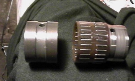 Et le roulement, avec à gauche la bague neuve et à droite la bague usagée (désolé, la tof est pas top). Noter le trou de passage d'huile, qu'il vaut mieux aligner avec celui de l'arbre