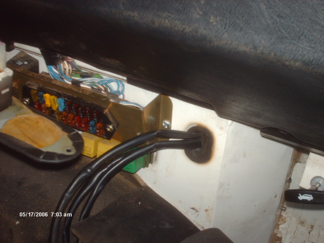 Pour passer le faisceau électrique après avoir démonté pas mal de truc du tableau de bord (je voulais au départ passer par les réservations de passage du circuit électrique de la conduite à gauche ) puis je me suis aperçu qu'il y avait une réservation dans le tablier au niveau de la boite à fusibles (elle est caché derrière l'insonorisant coté moteur) donc le faisceau est passé par là. et j'ai monté le programmateur à coté de la montre voilà pour ce soir si j'ai le temps demain je m'occupe de la ligne d'alimentation de la pompe à gas oil