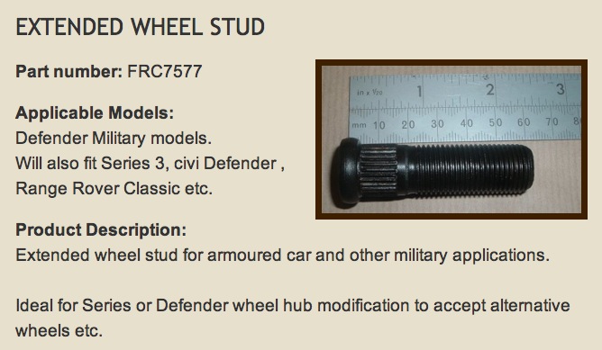 - Sur différents modèles antérieurs - je ne sais pas jusqu'à quelle année - j'ai remarqué qu'il y a un goujon à rallonge (FRC7577) qui remplace les goujons d'origine pour monter les jantes wolf.