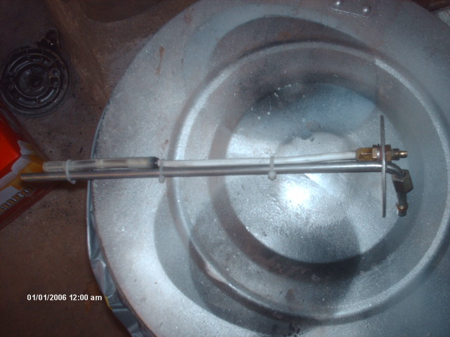 J'ai donc percé un trou pour passer un manchon à visser à coté du tuyau d'origine et j'ai passé un filtre de robinet de réservoir de moto qui trainait par là autour du plongeur( bien qu'il y ai déjà un filtre en entrée de pompe).