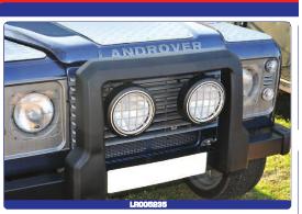 Rares sont les équipements qui sont ainsi marqués réglementairement. LR a au catalogue une référence, un cadre en polymère certifié conforme. Le modèle existe pour un montage sans treuil, ou avec treuil. Mais... rien n'indique que l'on soit en droit de rouler sur route avec le treuil en place.