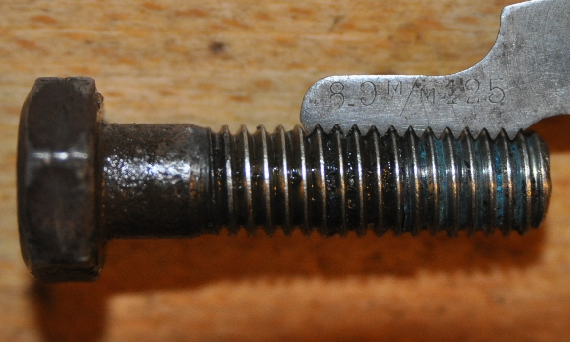 Une autre vis, qui illustrerai bien le thème et la notion de couple de serrage. Celle ci est vierge si je puis dire. C'est une M8 X 20 tête de 13mm. Sont usage est unique, pas de marquage: