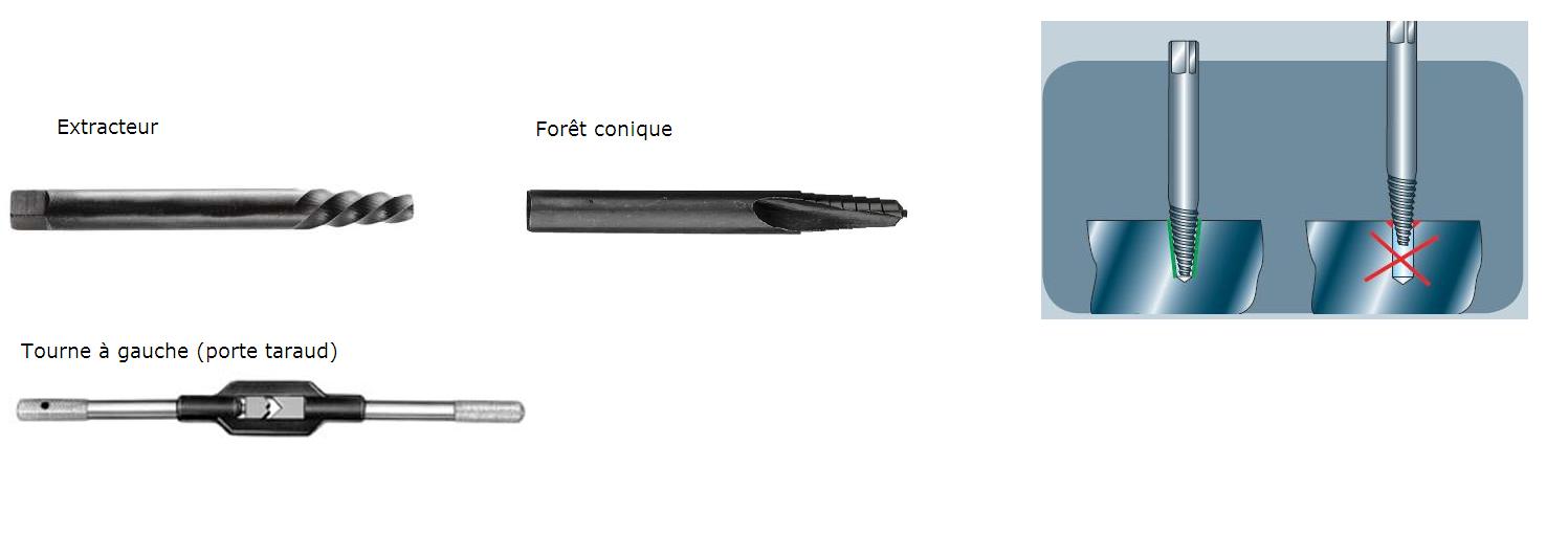 Taraud : outil servant à tarauder, donc à créer un filetage dans un trou. Il peut service à nettoyer un filetage (enlever le frein filet, la boue etc....). Sur la photo, le taraud me sert à nettoyer les trous pour vis de fixation du disque de frein.