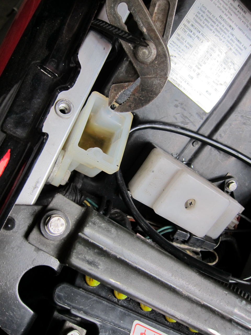 Filière : outil servant à fileter, donc à créer un filetage sur une tige ou un arbre. Il peut service à nettoyer un filetage (enlever le frein filet, la boue etc....). Sur la photo, la filière me permet de remettre en forme le filet suite au montage d'un écrou n'ayant pas les bonnes dimensions sur le support haut de l'amortisseur arrière.