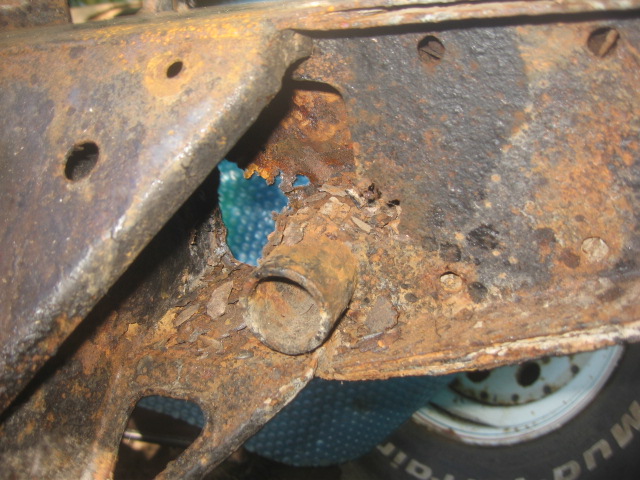 Traverse arrière de bonne facture bien qu'elle ne soit pas d'origine. Là bien sur, il est concevable qu'elle ne soit pas galvanisée.