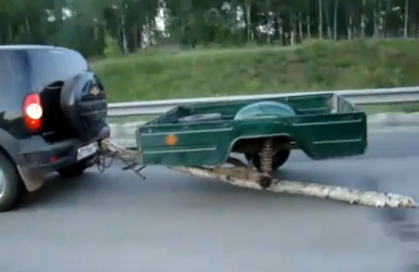 mouais. Je ne pense pas qu'il puisse faire plus que quelques kilomètres (moins de 10). Je me suis amusé à trainer un acacia sur route goudronnée, une fois. Les bouts faisaient dans les 15cm de diamètre et 4m de long, il y en avait 5 ou 6, retenus ensemble par une chaine, et trainés derrière le 110. J'ai fait 250 mètres et la chaine était coupée. C'était de la grosse chaine, pour la faire tenir j'y avais passé un boulon de 12.Def e-Duck a écrit :A défaut de roue de secours, il reste des solutions de dépannage, "à l'indienne". Si je n'avais pas vu ces photos, extraites d'une video, jamais je n'y aurais pensé :