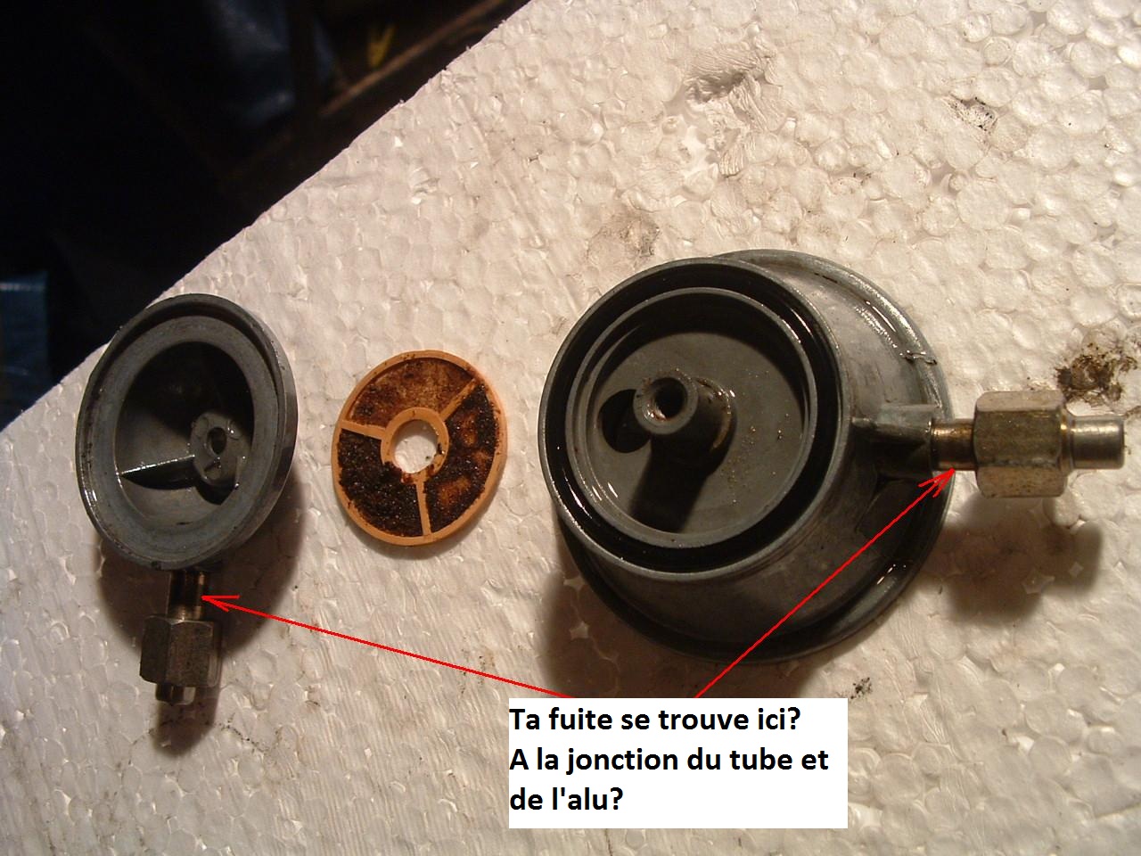 si le raccord tourne dans l'alu du corps de pompe, mieux vaut pour toi la remplacer (collage hazardeux même à l'araldite )