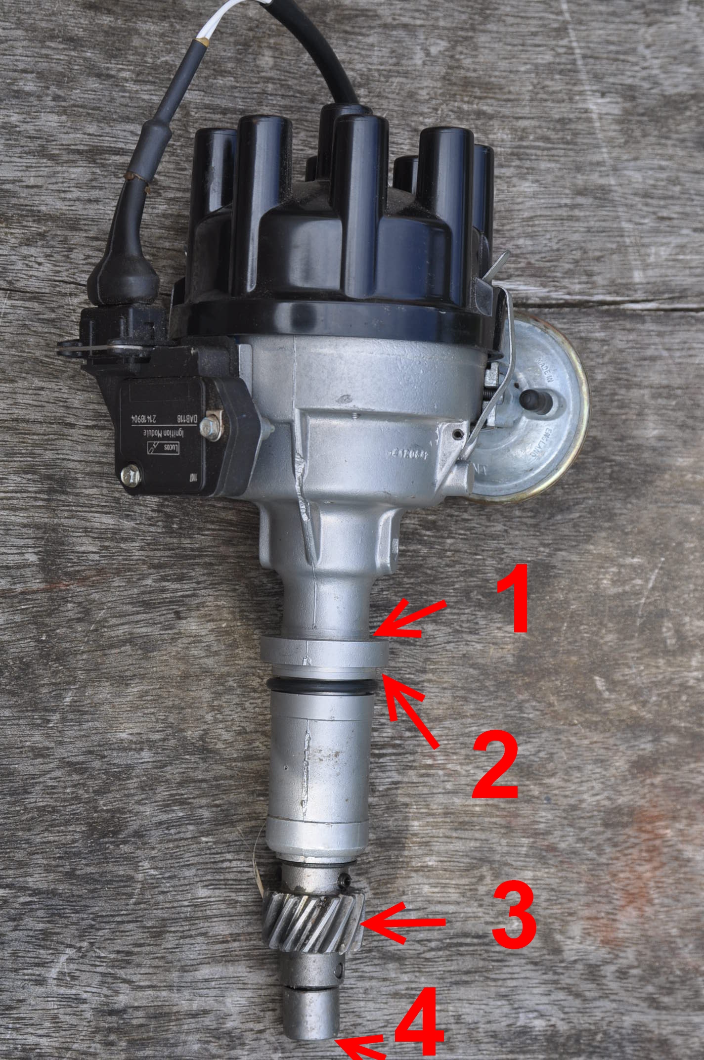 Par le pignon hélicoïdale d'entrainement rep 3 bien que relié à l'arbre à cames, on ne peut pas dire que ce soit une bonne masse genre entre une accélération et une décélération plus de contact. Le tout maintenue par une goupille méca-indus que je ne saurais trop conseiller de contrôler de très très près si tu démonte ton allumeur. Elle casse bien, et plus d'allumage correcte, vois aussi l'usure possible du logement. Enfin, tout au bout, la fente d'entrainement d'axe de pompe à huile rep 4 pas terrible non plus. Le truc plus ou moins branlant en bout maintenu par un petit axe. Donc tout ça pour dire qu'un petit bout de fil entre une vis du bloc... et l'allumeur, ou d'ailleurs une petite cosse mâle était en attente au pied du module d’allumage. Certain on dut, également se poser la question. Serte quand tout est neuf, il n'y a pas de soucis de masse, mais avec l'age ou les modifications sur 30 ans fabrication donc l’évolution...