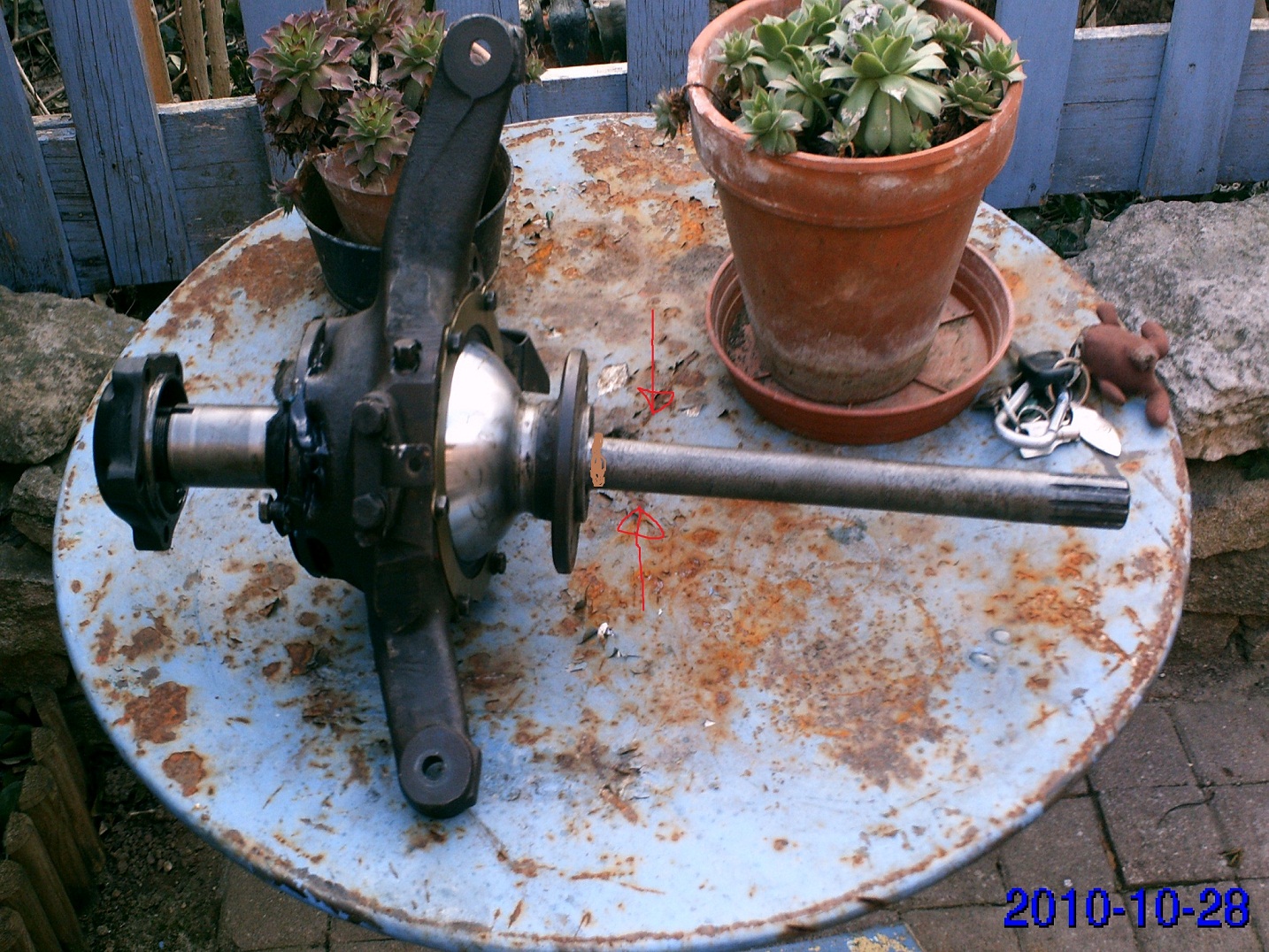 voila en photo la piece en fleche rouge est bloquer tourne avec tout l ensemble,alors qu elle devrait etre independante et entrainer le joint homo a l interieur de la noix non?je pense a un mauvais montage donc la baghttp://www.landroverfaq.com/download/file.php? ... 2f3ee2d5cd