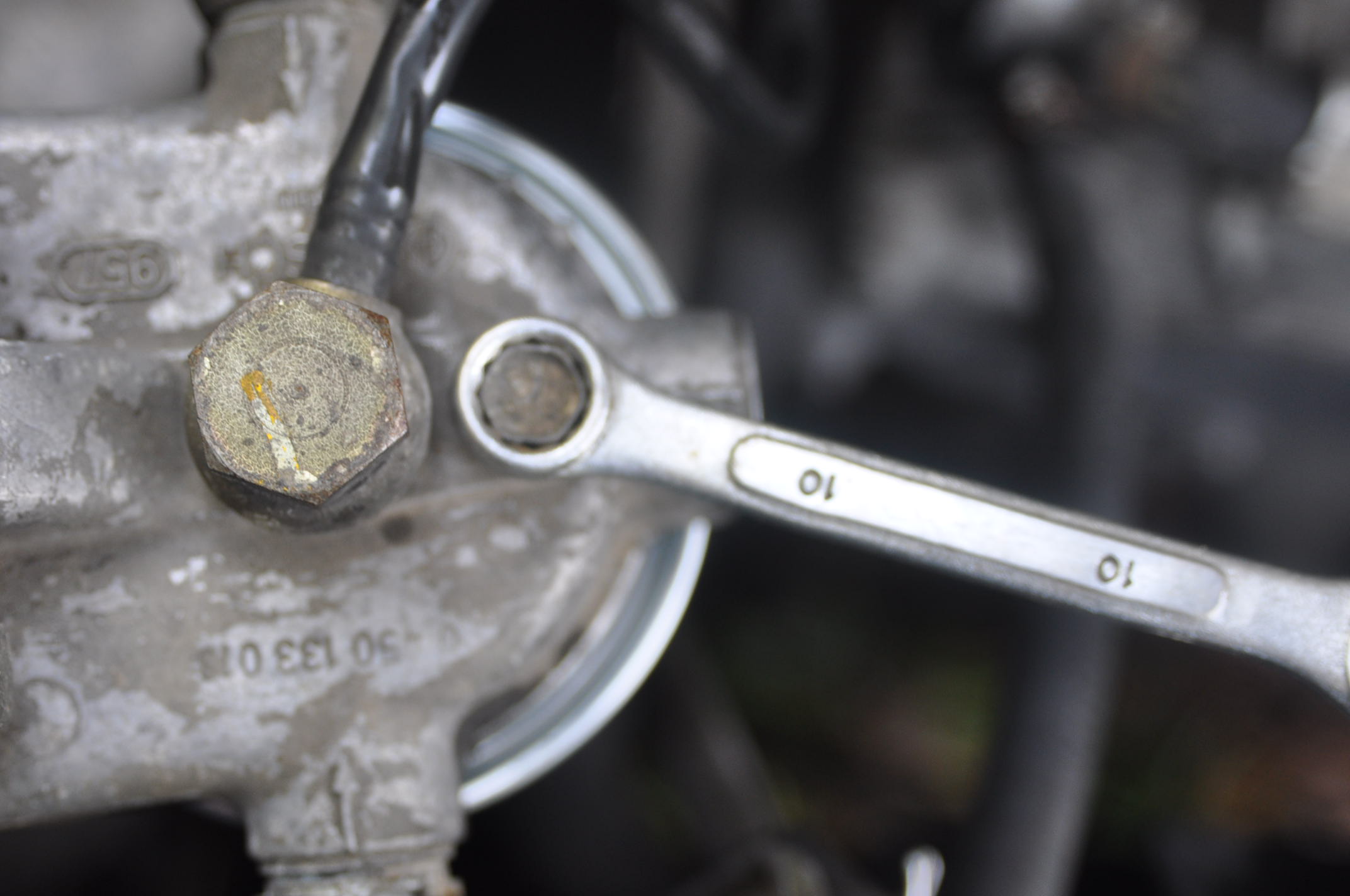 Là, c'est tout sec encore: Là ça dégueule, sans bulle. Donc il suffit de resserrer la vis de purge pas trop fort, il y a un joint cuivre. De même que le filtre a gasoil n'a besoin d'être serré trop fort.