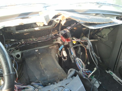 Je finis de depouiller le bas mais les fils grillés partent derriere le tableau de bord... Si quelqu'un connait une technique simple pour tout enlever, je suis preneur.