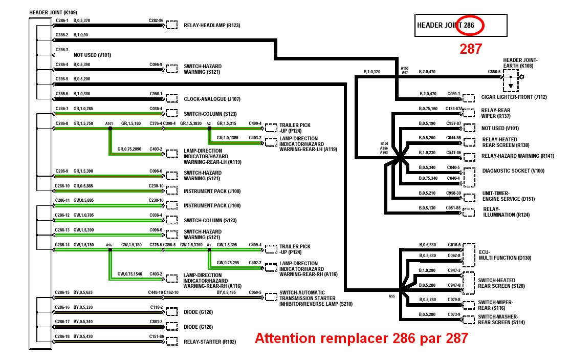 Malheureusement une non correspondance du brochage de C287 sur son schéma et sur le schéma des clignotants.