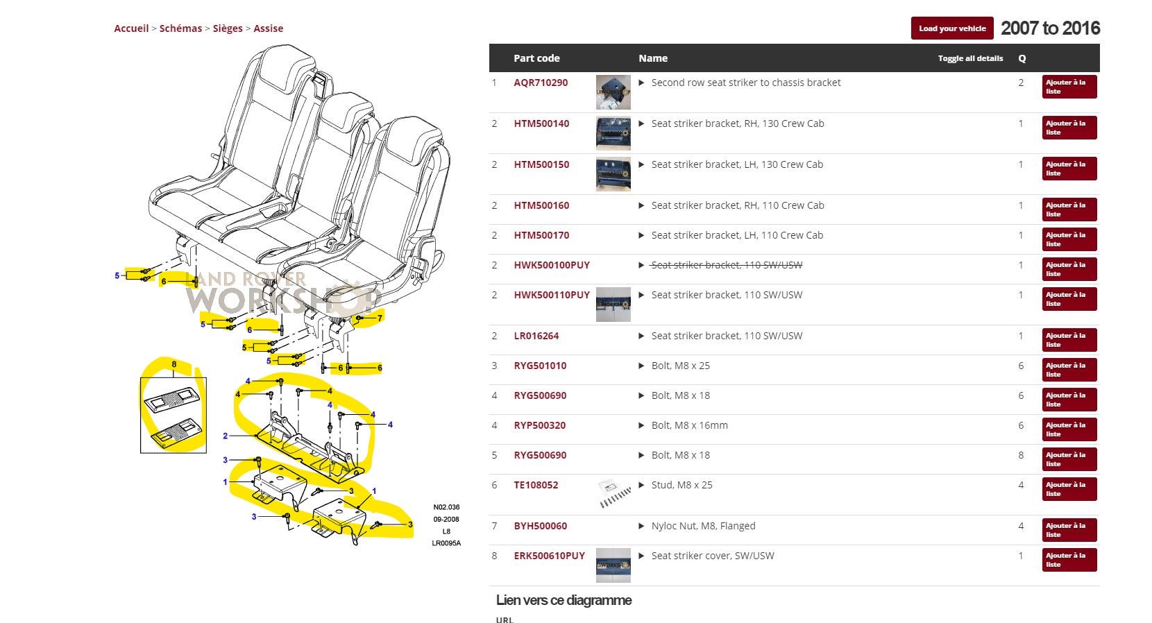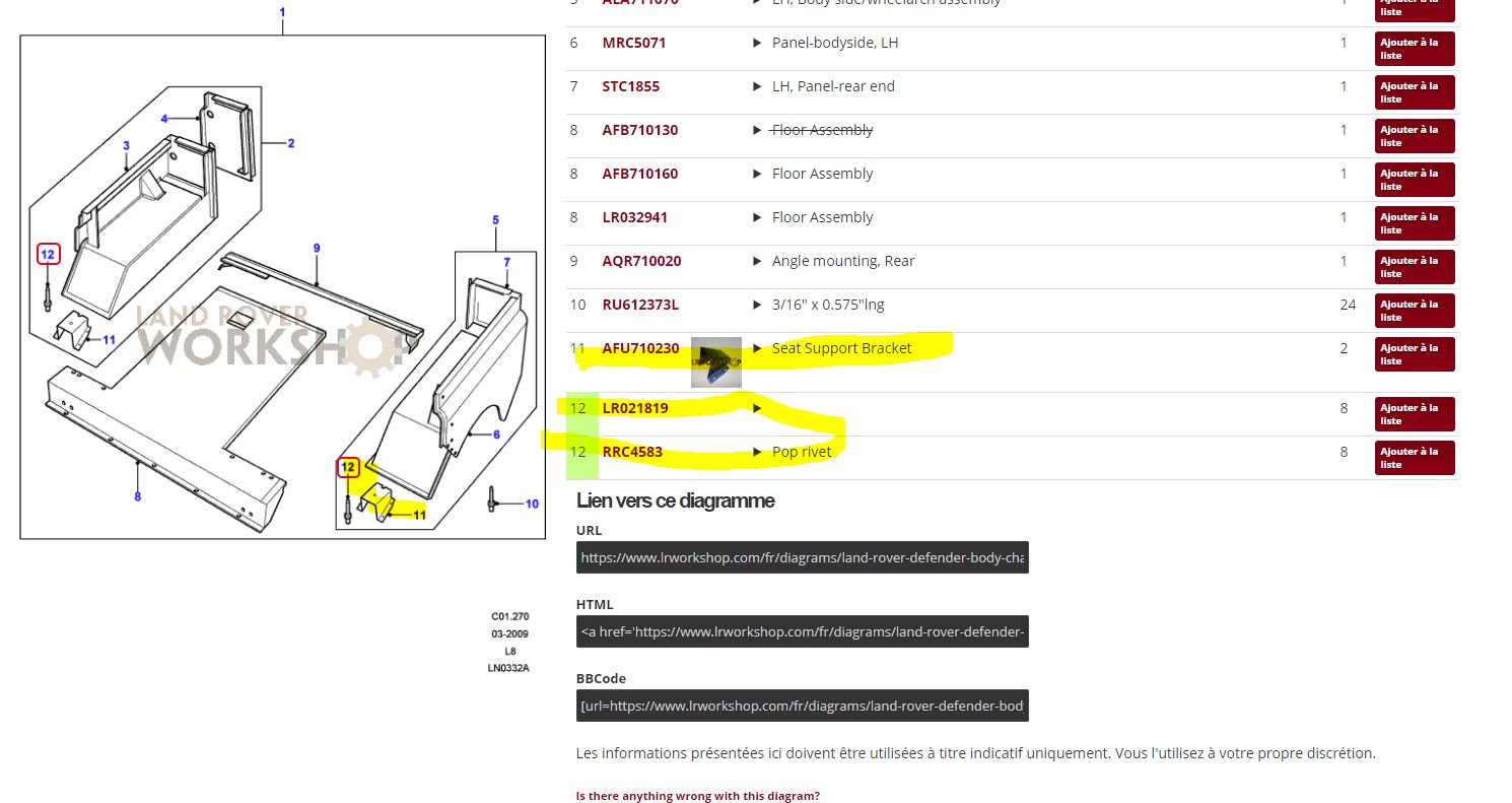 Bon je suis aller chez LR, j'ai commander mon support de sièges qui porte la mention LAFU 710230 et mes deux renforts qui vont au niveau du chassis et qui permettent la bonne accroche des sièges au plancher du véhicule. La REF LAQR 710290 X 2 ... plus qu'attendre l'arrivée des pièces et en route pour le montage.