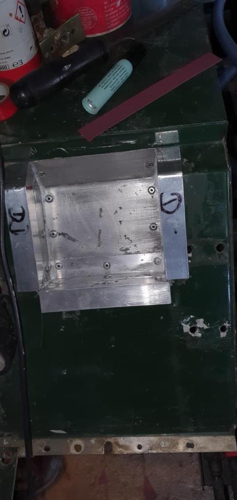 Démontage du plancher arrière en meulant les têtes des rivets métallique et en perçant au diamètre 7 les points de soudures. L’enlèvement du plancher fait apparaitre les années de poussières. Après un bon nettoyage, il s’avère aussi nécessaire de profiter de l’opération pour traiter la rouille et passer un coup de peinture châssis. J’ai éliminé la rouille à l’acide phosphorique (procuré chez Restom), cela fonctionne très bien et met la tôle à nue avant peinture. Avant : Pendant : Après : Après peinture : Mise en place des supports arrière en installant des inserts acier M8 dans la traverse du châssis. Mise en place de la nouvelle traverse de fixation des points avant de la banquette. Cette étape a nécessité plusieurs montages a blanc afin de bien ajuster la position de la banquette. J’ai profité de l’opération pour passer proprement l’alimentation 12v de mon frigo situé à l’arrière droit de la benne. Et venu ensuite le travail le plus délicat : la découpe des passages de roue car le siège du TD4 ne passe pas avec les passages de roues du TD5. J’ai donc constitué des petits caissons en tôles et équerre en aluminium assemblées par rivets pop, après réalisation d’un patron en carton. Je n’avais pas les butées de la banquette TD4, j’ai donc modifié celles du TD5. Le planché arrière a été refixé en mettant des inserts alu M5 à l’emplacement des anciens points de soudure et en le visant avec des vis BTR M5. Apprêt et peinture