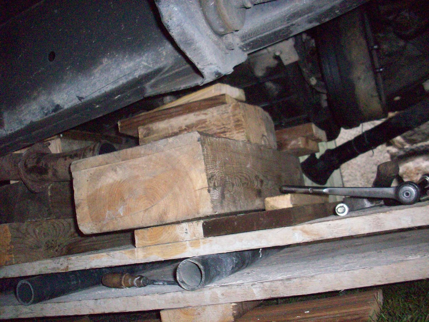 pour déposser la boite, calée avec du bois et trois cylindres pour la faire glisser mais il faut demonter le plancher à suivre .....