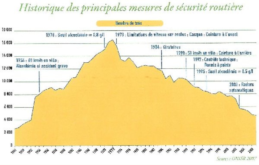 et globalement, l'année ou j'ai passé mon permis, c'est l'année de tous les records de morts sur la route soit 16500 morts pour 8 ou 10 fois moins de voitures en circulation. (ok les routes étaient merdiques aussi) m'enfin...