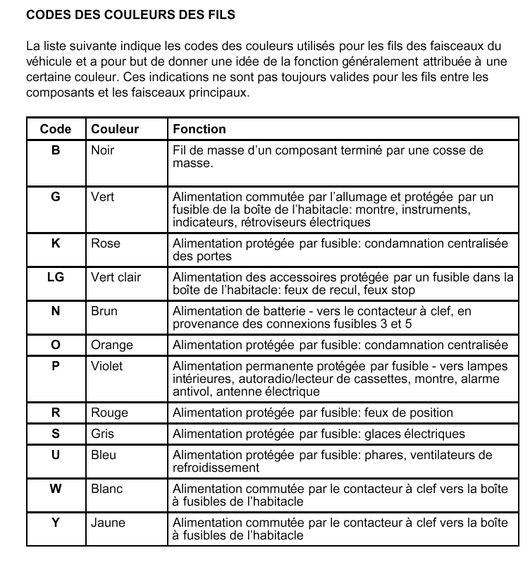 De plus, il y a les couleurs fondamentales chez land qui permettent en gros d'avoir une idée générale de l'utilisation d'un fil. Exemple noir toujours la masse heu... sauf pour la prise de remorque nouvelle norme :mrgreen: .