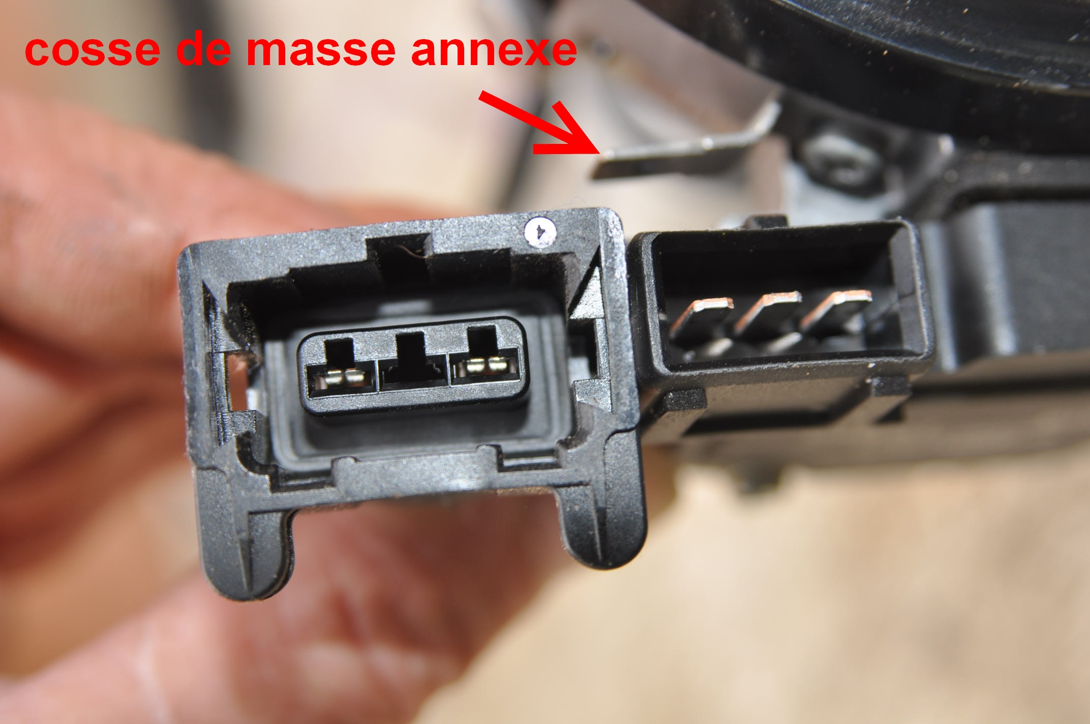 3) détail du connecteur de l'ampli, la cosse du milieu est absente coté faisceau, elle est prévue pur une masse potentiel quand celle-ci n'est pas prévu sur le corps de l'ampli. Dans le cas des land ou range elle s’effectue par sa fixation sur le corps de l'allumeur. Tu peux remarquer d'ailleurs une petite cosse de masse supplémentaire sur le corps de l'allumeur lui même.