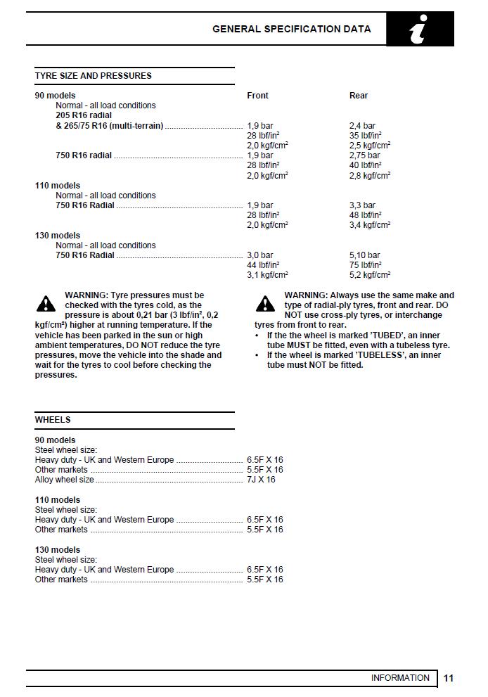 J'ai pris les tailles pneus que l'on trouve sur les Land Rover seulement, tailles homologuées, car sinon cela donnerait une trop longue liste.
