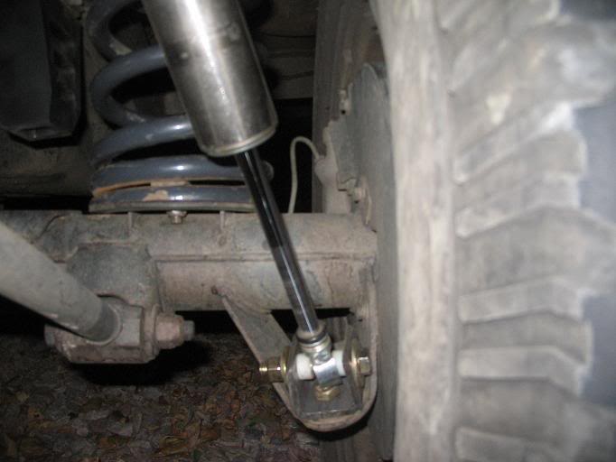 Le proprio d'avant, dans sa quete de la bonne affaire ou de l'astuce pour gagner en débatement, avait fait le choix de l'adaptation d'amortisseur de Toy (HDJ80 je crois) qui sont en oeil - oeil. Du coup le U d'adaptation en bas est vissé sur le support d'amortisseur et il n'y a plus de risque de "destruction" des coupelles... J'avoue que si j'ai eu quelques déconvenus avec certaines de ses modifications souvent fort peu conventionnelles, celle là, par contre, ne m'a jamais posé le moindre soucis.... Peut être lorsque je vais remplacer les amortisseurs, va falloir que je trouve le bon modèle !