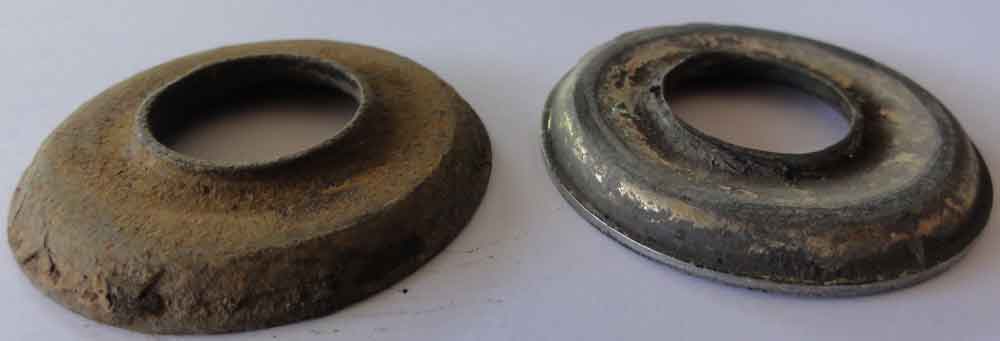 Sur la photo du milieu, on voit que la coupelle inférieure a sauté et on voit la trace des points de soudure qui la fixait au support. Le trou dans le support semble déformé.