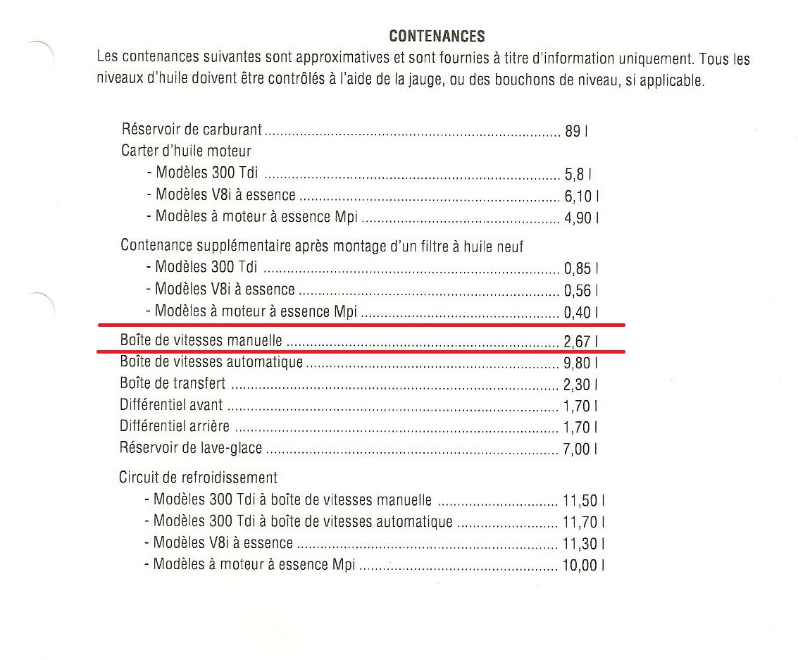 De plus, un garage se disant specialiste independant Land Rover a Paris (qui a le simple merite d'etre dans le meme quartier que moi) m'a vendu 1.5l de MTF94 en affirmant que ca serait suffisant pour une vidange, malgre la contenance de la boite annoncee comme bien superieure. Ca me parait peu, surtout a la lecture de certains messages sur ce sujet. Je cours racheter un litre et fusille le dit garagiste du regard?