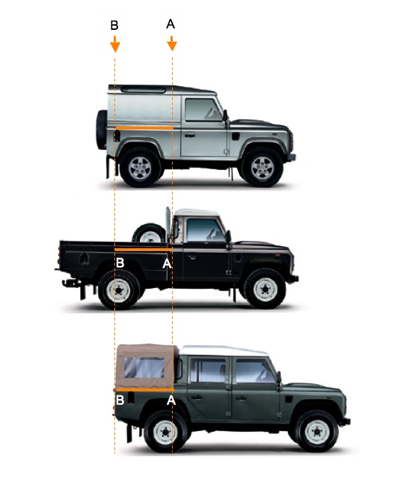 Entre le 110 SW ou CTTE ou Crew cab et le 90 standard, c'est la longueur de baguette entre les deux soudures qui change.( le trait orange donc)