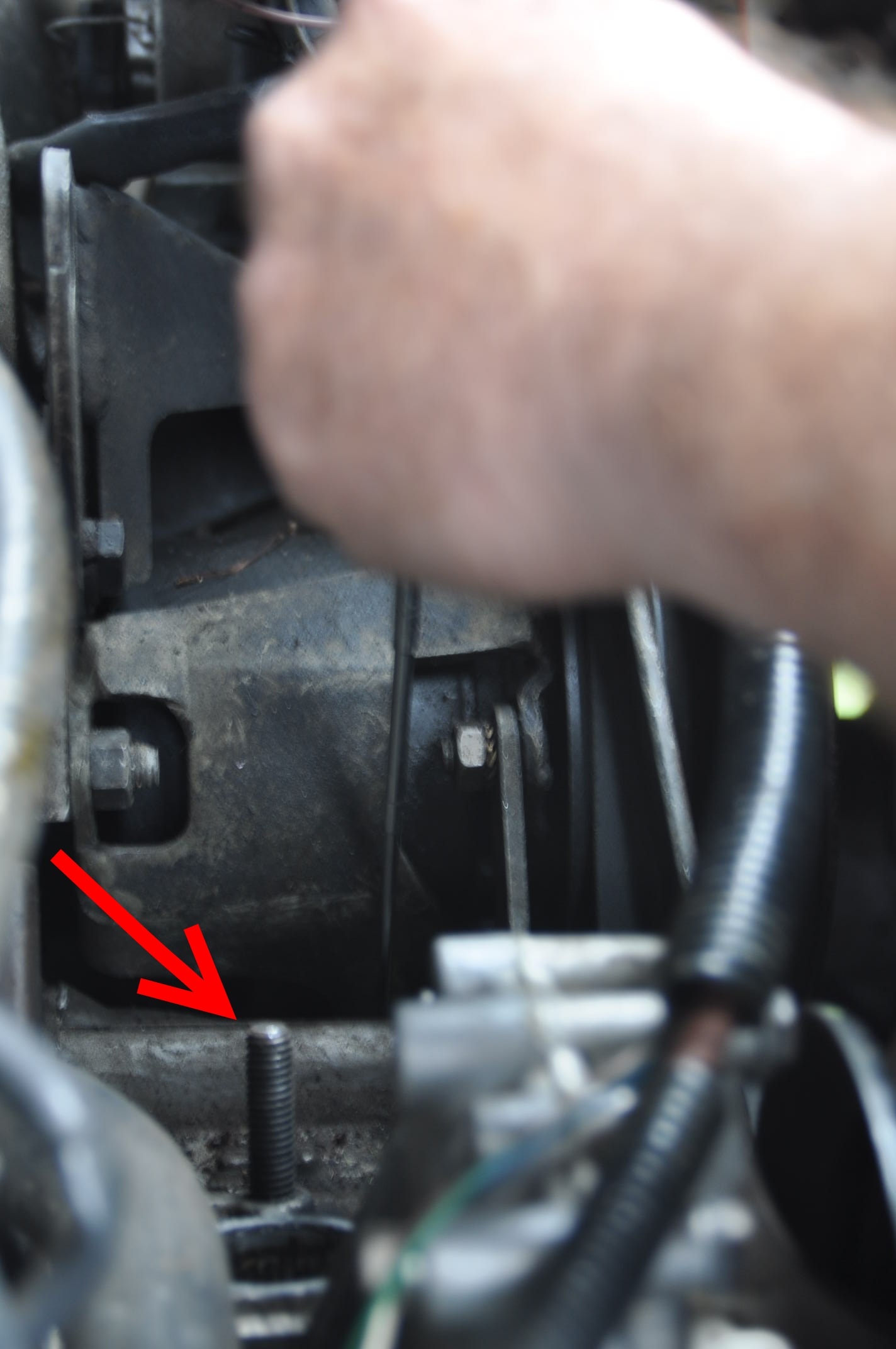 16) Ça y est ... Une petite pointe de graisse facilite la descente des premiers filets, souvent et surtout sur les vieux V8 bien bricolés ou plutôt mal bricolés, le goujon et l'écrou sont en mauvaise état et ne s'assemble pas bien avec des points durs et autre misère. Vue l'accessibilité, il faut contrôler l'état, et veiller à ce que l'écrou puisse se serrer sans difficulté au doigts.