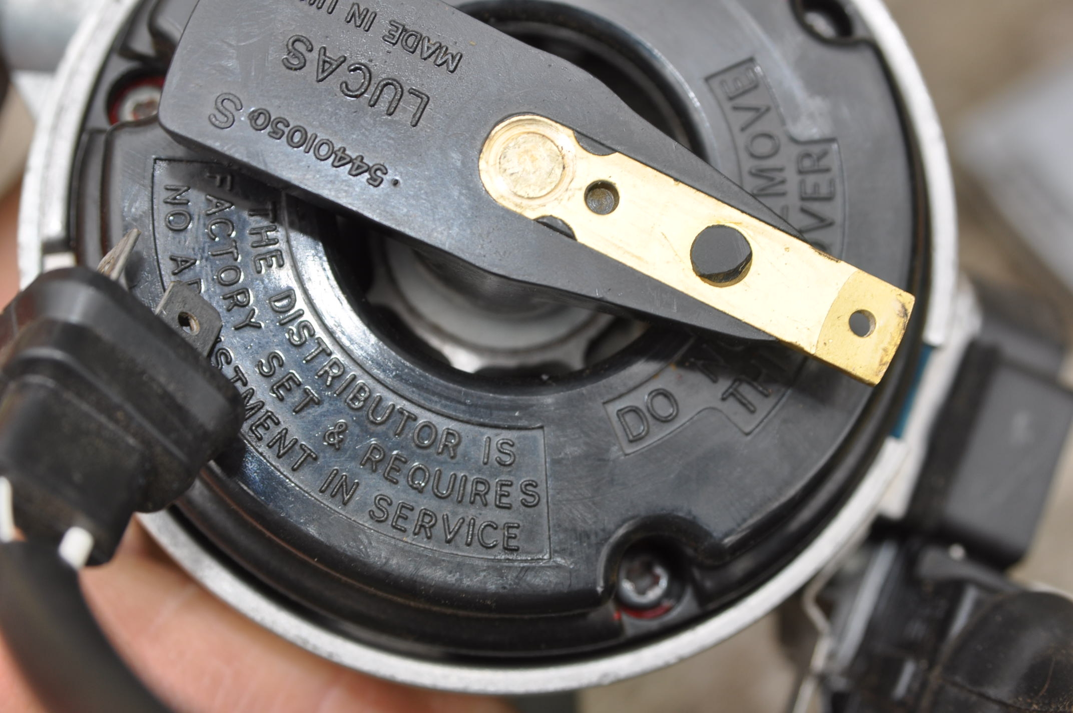 Contrôler l'état du charbon centrale, son usure et son ressort. Contrôler les plots de distribution, ce n'est pas un peu d'oxydation qui va empêcher la THT de passer. Veiller quand même a ce que cette oxydation ne parte pas en profondeur, des fois c'est trompeur, un petit grattage permet de s’affranchir de ce doute. Vérifier aussi si le plastique de la tête n'est pas fendue. sur la photo, cette tête est bonne.