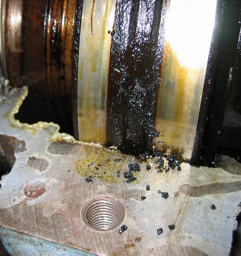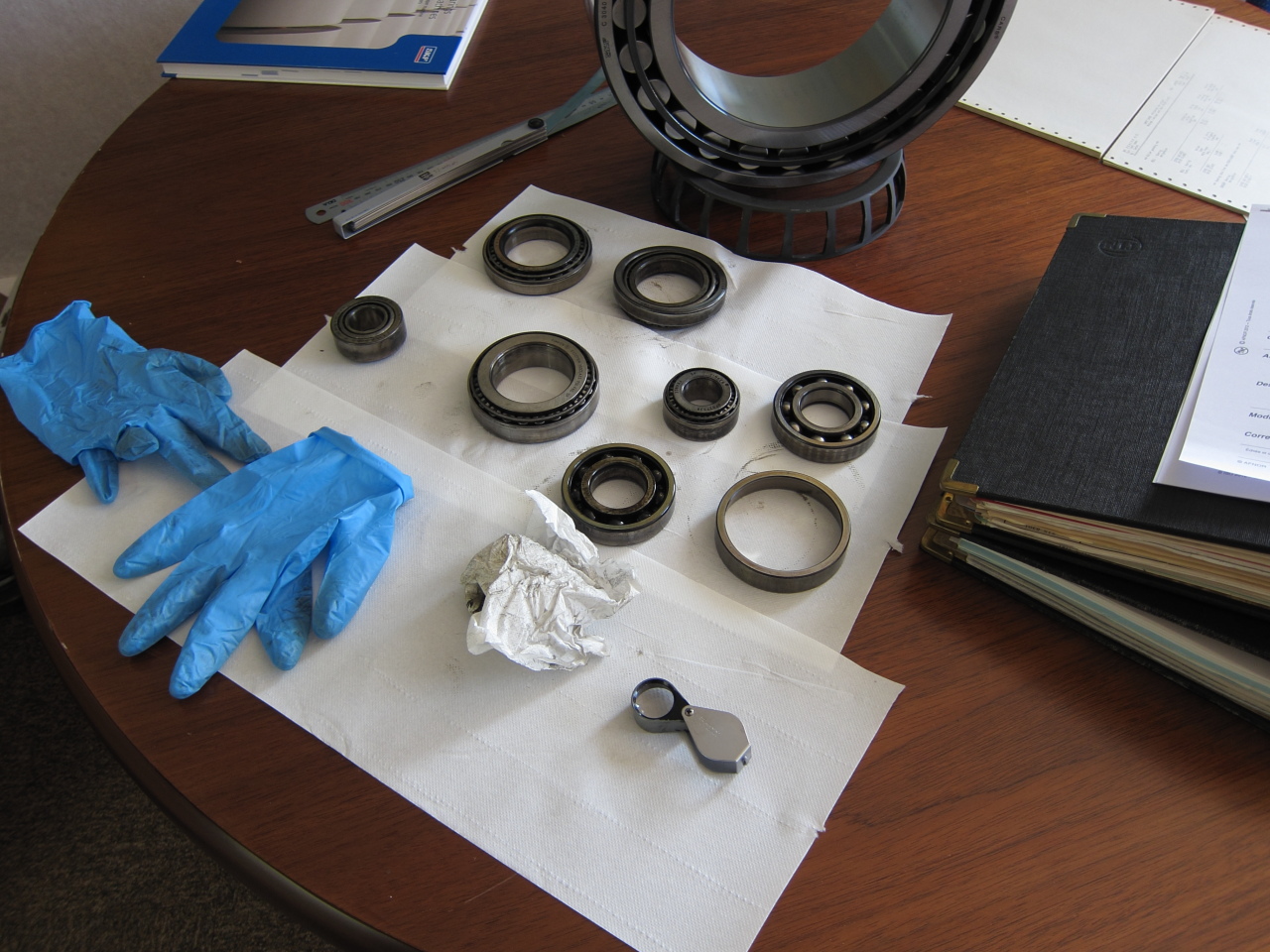 Ce qui est certain c'est que la lubrification a été limite limite avec une augmentation de température importante dans les roulements rigides à billes tel que l'huile est arrivé à s'oxyder et donner une couche noir dure. Il est d'ailleurs étonnant que les roulements rigides à billes montrent une telle couche d'huile oxydée en non les roulements à rouleaux coniques.