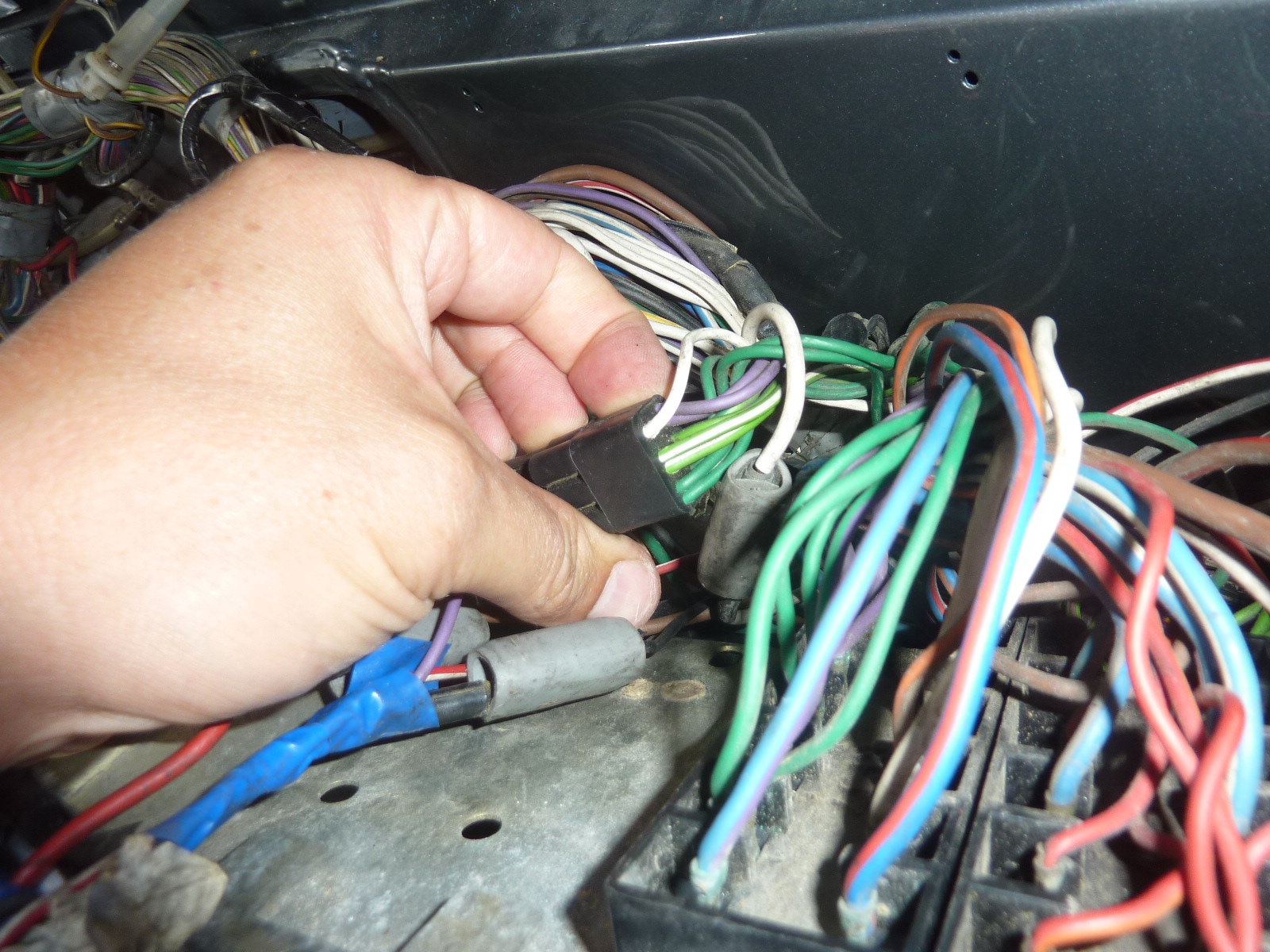 Feux stop: il faut que quelqu'un appuis sur la pédale pour pouvoir mesurer du 12V dans le fil vert liseré violet.
