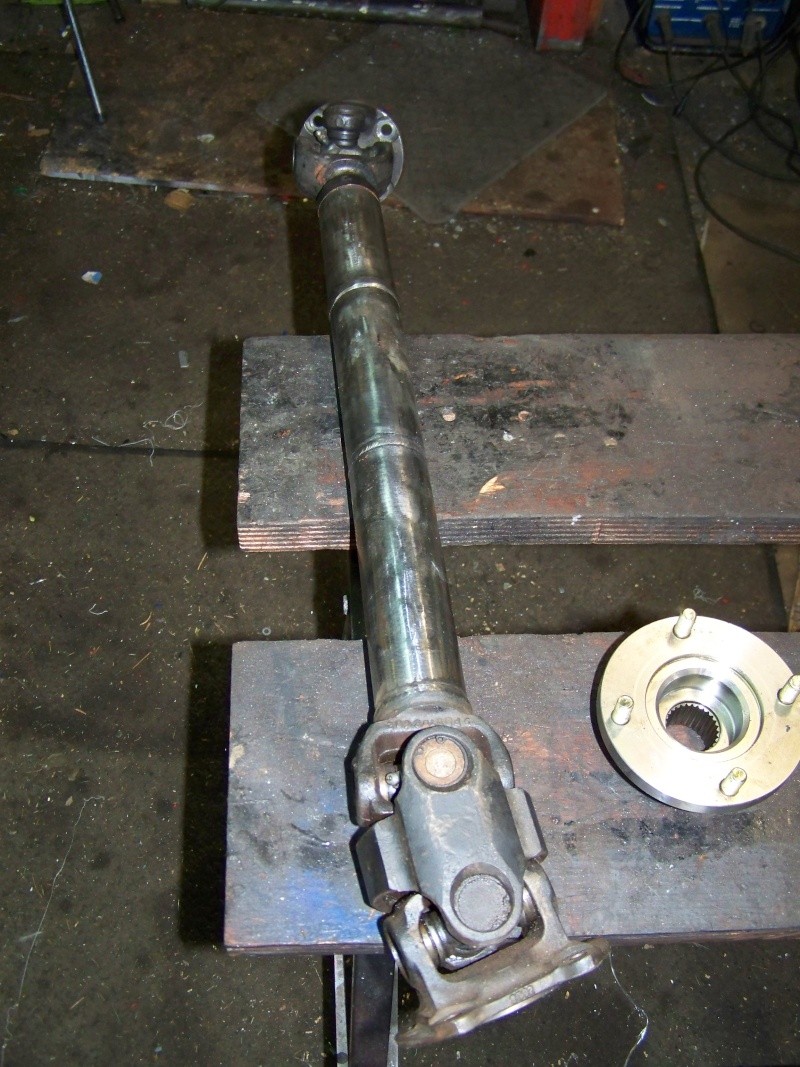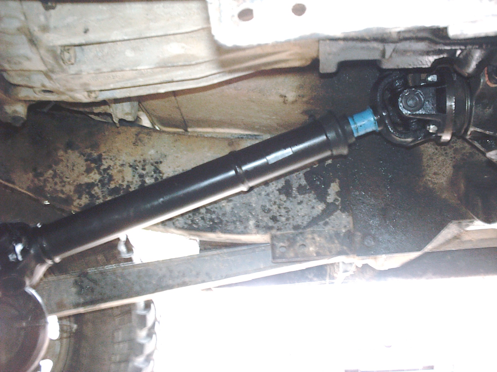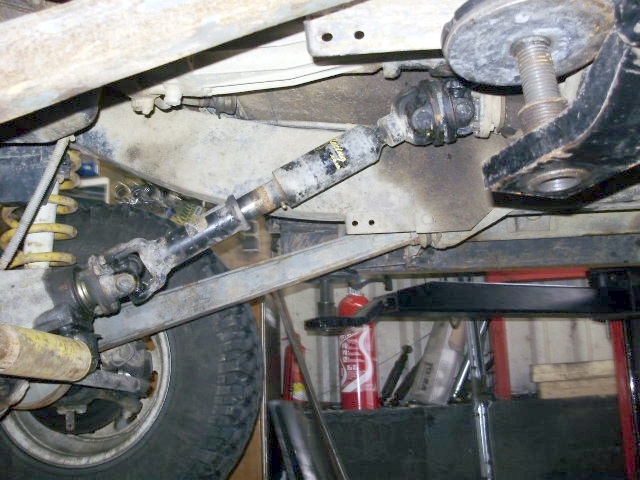 4- la jonction différentiel de pont/arbre de transmission remontera du même coup vers le haut en faisant diminuer l'angle de l'arbre coté pont,