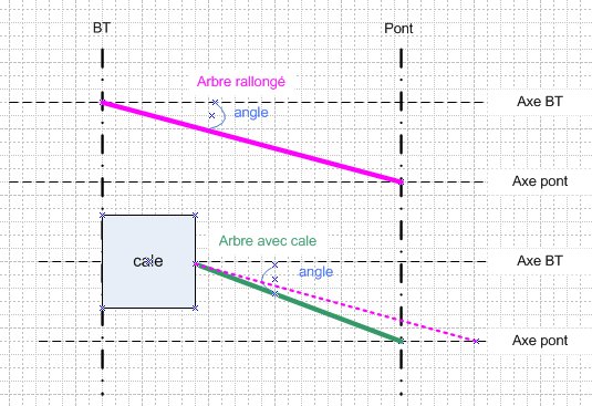 une cale rajoutée coté PONT aura moins d'influence que si installée coté BT vu la valeur des angles mis en jeu de chaque coté de l'arbre.
