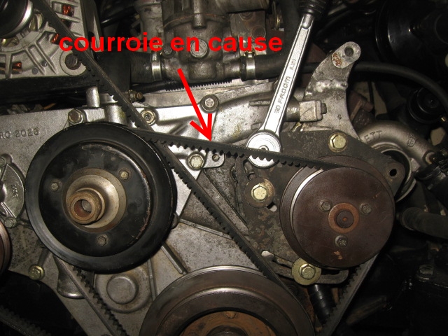 Mais il est clair que si le support est desserré, la courroie n'est plus tendue correctement donc la pompe et le visco ne sont plus entrainés correctement et l'alternateur, même si sa courroie est bien tendue subira les effets d'une courroie non tendue.