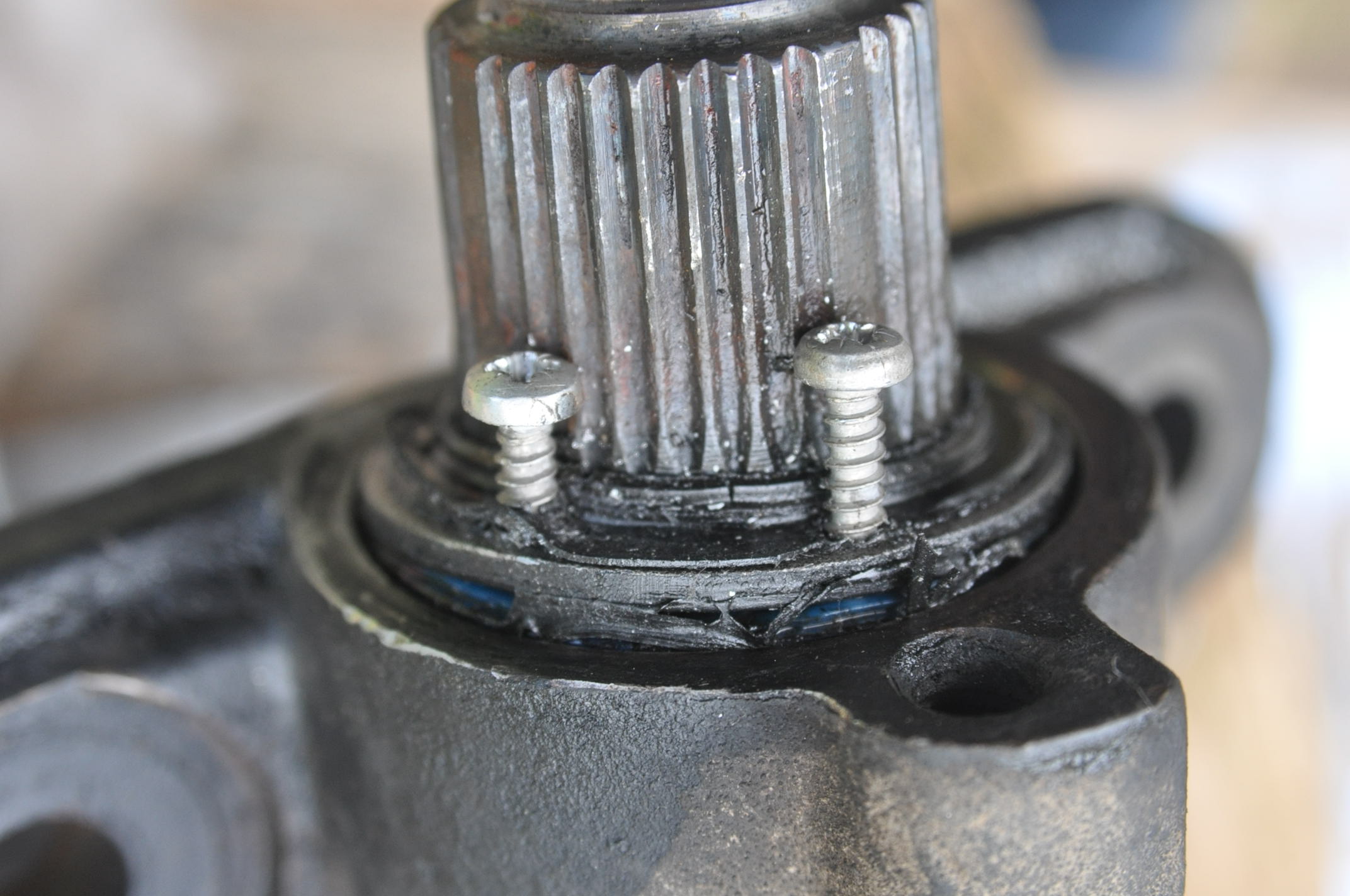 55) Un bel exemple de fuite sur le joint d'entrée. Sur ce modèle, il y a le cache poussière en place.