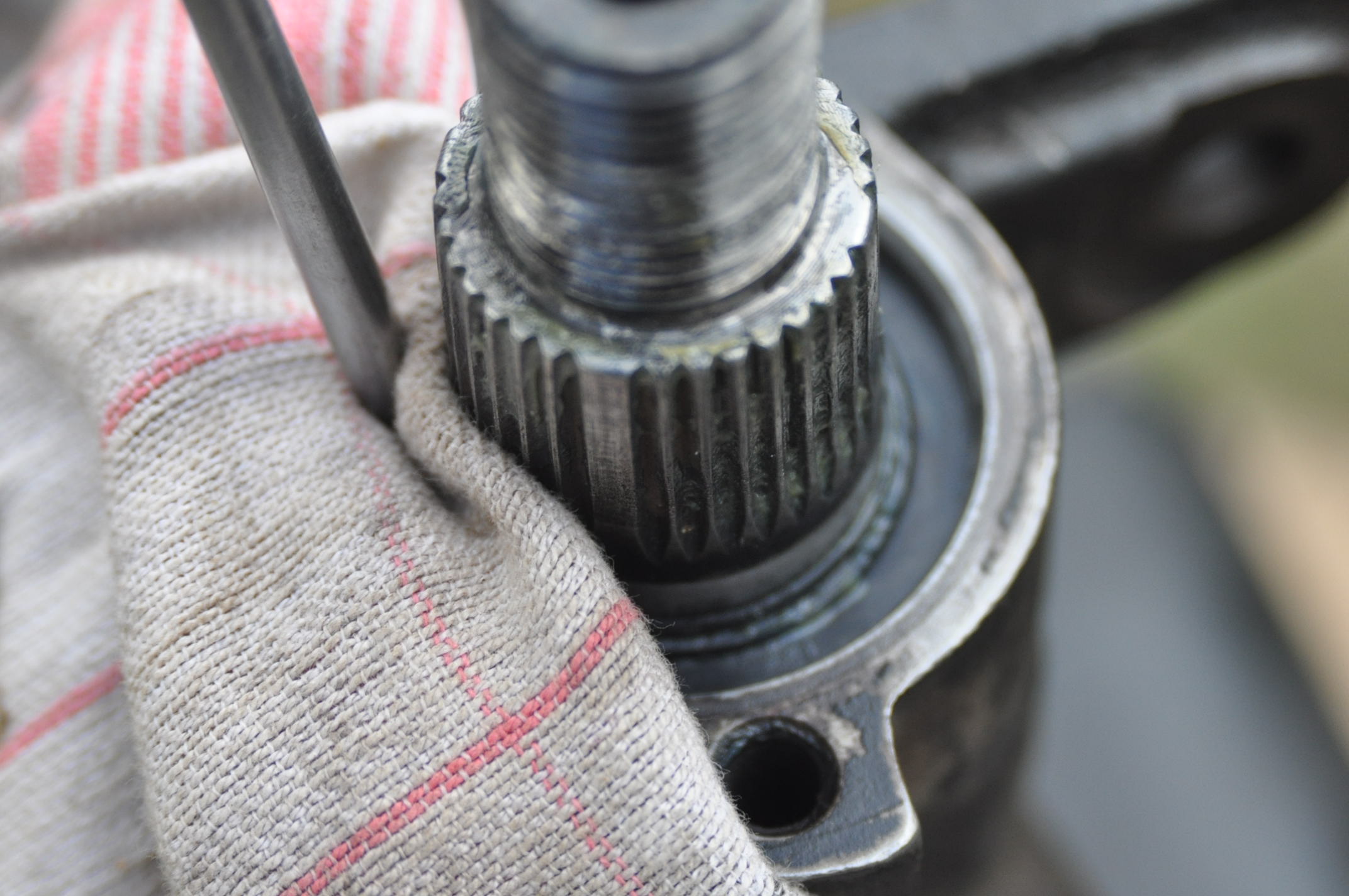 55) Un bel exemple de fuite sur le joint d'entrée. Sur ce modèle, il y a le cache poussière en place.