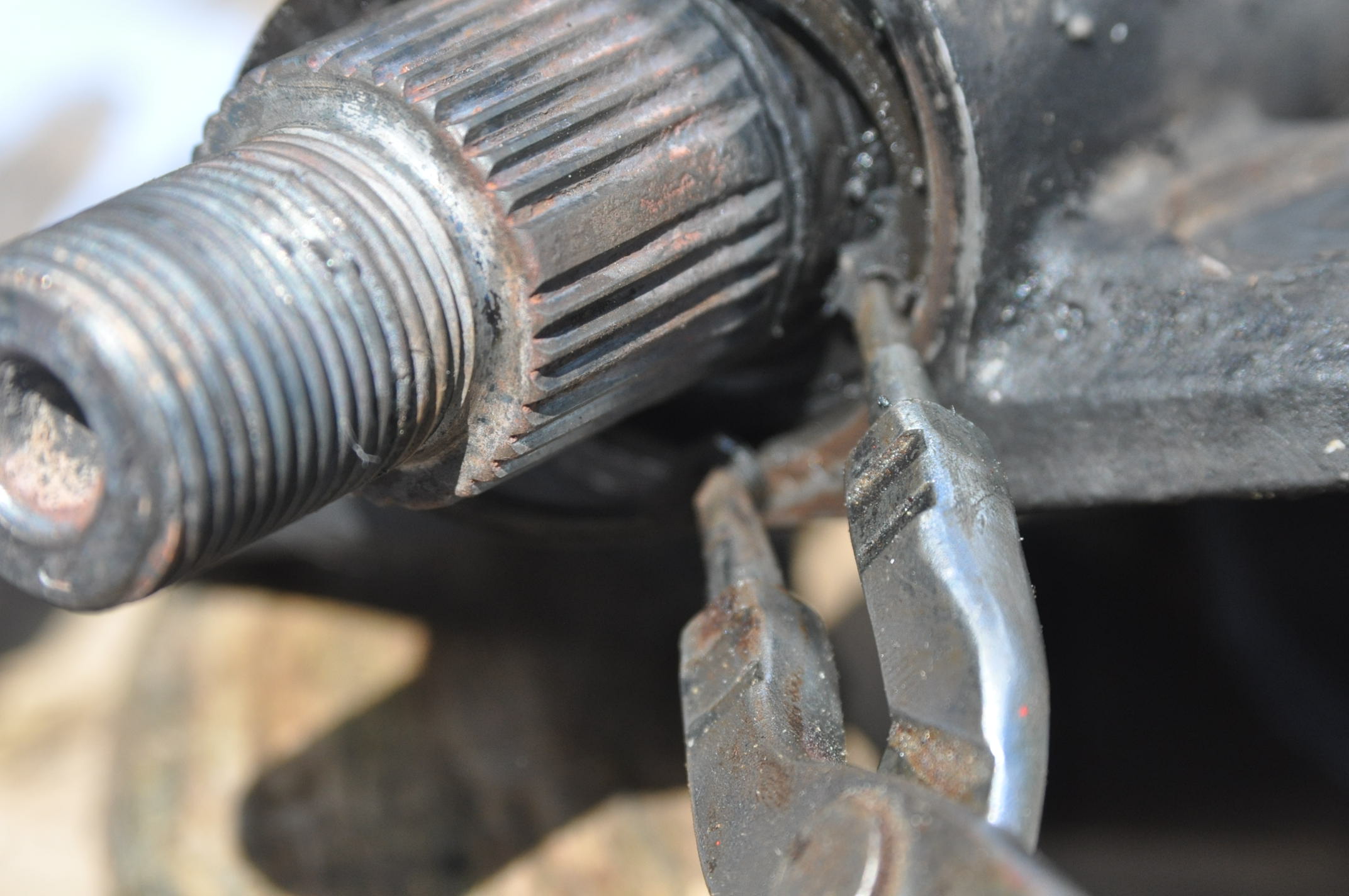 28) On décolle le beau clips, en le faisant tourner dans sa gorge à l'aide d'un tournevis et d'un petit marteau...