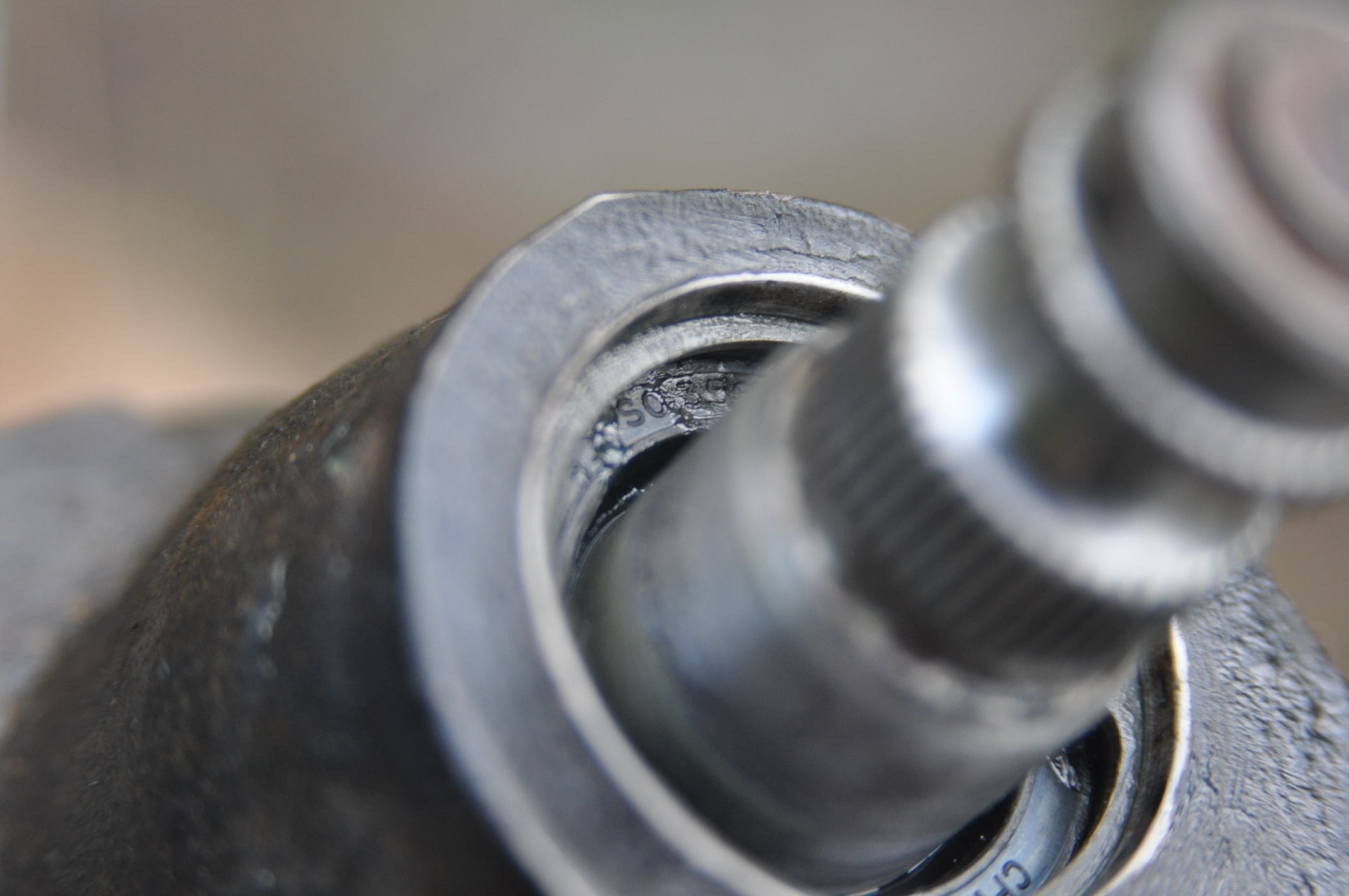 55) Un bel exemple de fuite sur le joint d'entrée. Sur ce modèle, il y a le cache poussière en place.