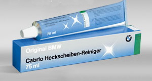 Au risque de paraître insistant, si tu as l'opportunité de passer devant une concession BMW, fais l'essai de leur produit "spécial cabriolet" (Original BMW Cabrio Heckscheiben-Reiniger). C'est le produit pour les BMW Z3 à lunette arrière plastique (ensuite sur les Z4 c'est devenu une lunette vitrée).