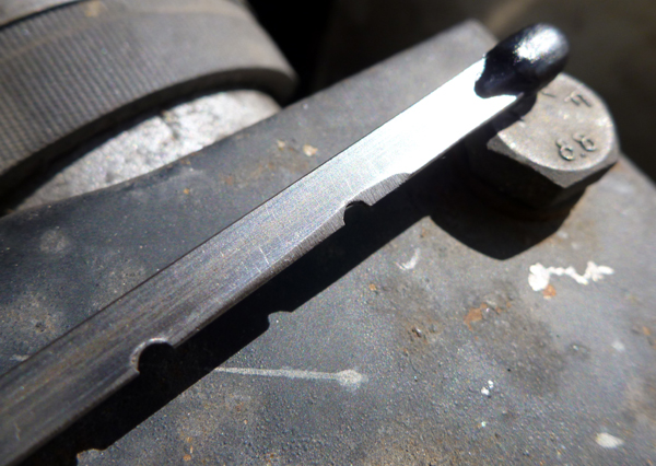 Je penche maintenant (certains diront qu'ils le pensent depuis le début, c'est vrai...) pour une trace de meulage de la jauge... C'est en effet possiblement cohérent avec la précence à cet endroit des "crans-repères" réalisé par "poinconnage", ce qui laisse des bavures en forme de "fil" sur le bord de la jauge...