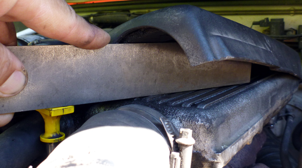 i) la jauge ne peut pas toucher la tube horizontal de la crépine (sauf ENORME pb de fixation dudit tube)... Une photo précédent laissait supposer que si... Mais en fait il y a plusieurs cm de distance... Voir photos... ii) La jauge tombe pile à l'endroit de la paroi verticale allant vers la partie la plus creuse du carter. Il y a une très légère trace dans le carter à l'endroit en question. Après vérif, il y a bien contact jauge/carter (jauge badigeonnée de graisse, relevée un peu, carter mis en place, jauge enfoncée, relevée, carter déposé => y'a une trace).