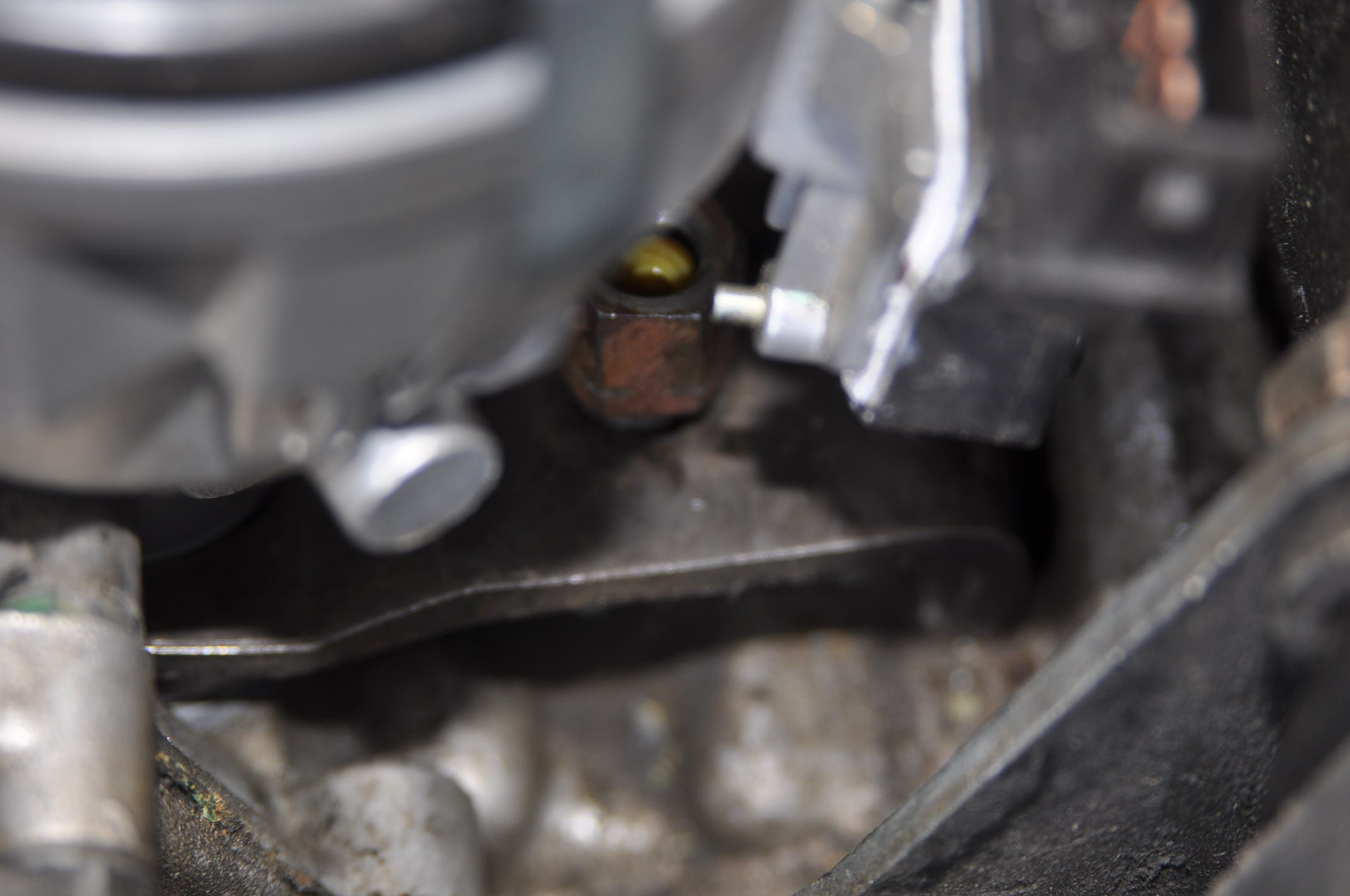 16) Ça y est ... Une petite pointe de graisse facilite la descente des premiers filets, souvent et surtout sur les vieux V8 bien bricolés ou plutôt mal bricolés, le goujon et l'écrou sont en mauvaise état et ne s'assemble pas bien avec des points durs et autre misère. Vue l'accessibilité, il faut contrôler l'état, et veiller à ce que l'écrou puisse se serrer sans difficulté au doigts.