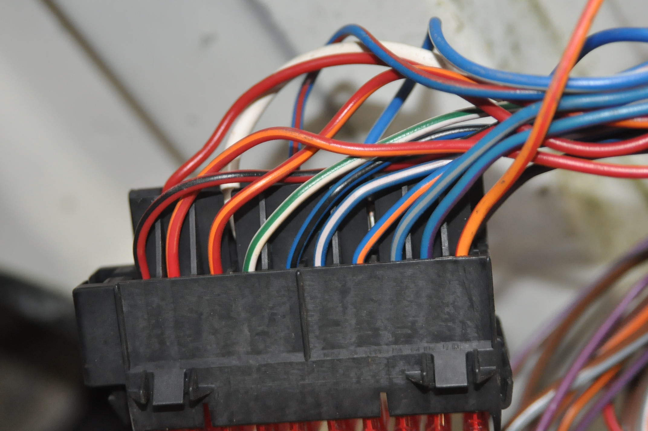 Donc la panne suscitant l'allumage aléatoire des voyants TC et ABS provenait d'un ces connecteurs ( le rouge ) où l'on peut voir les fils jaunes de commande des injecteurs pompe. On peut également voir qu'il y a des nerveux qui ont du mal à appuyer sur les languettes de déverrouillage des connecteurs le rouge est cassé. En haut à droite un connecteur bleu dit K109 qui sert a établir des dérivations propres. Merci pour le retour.