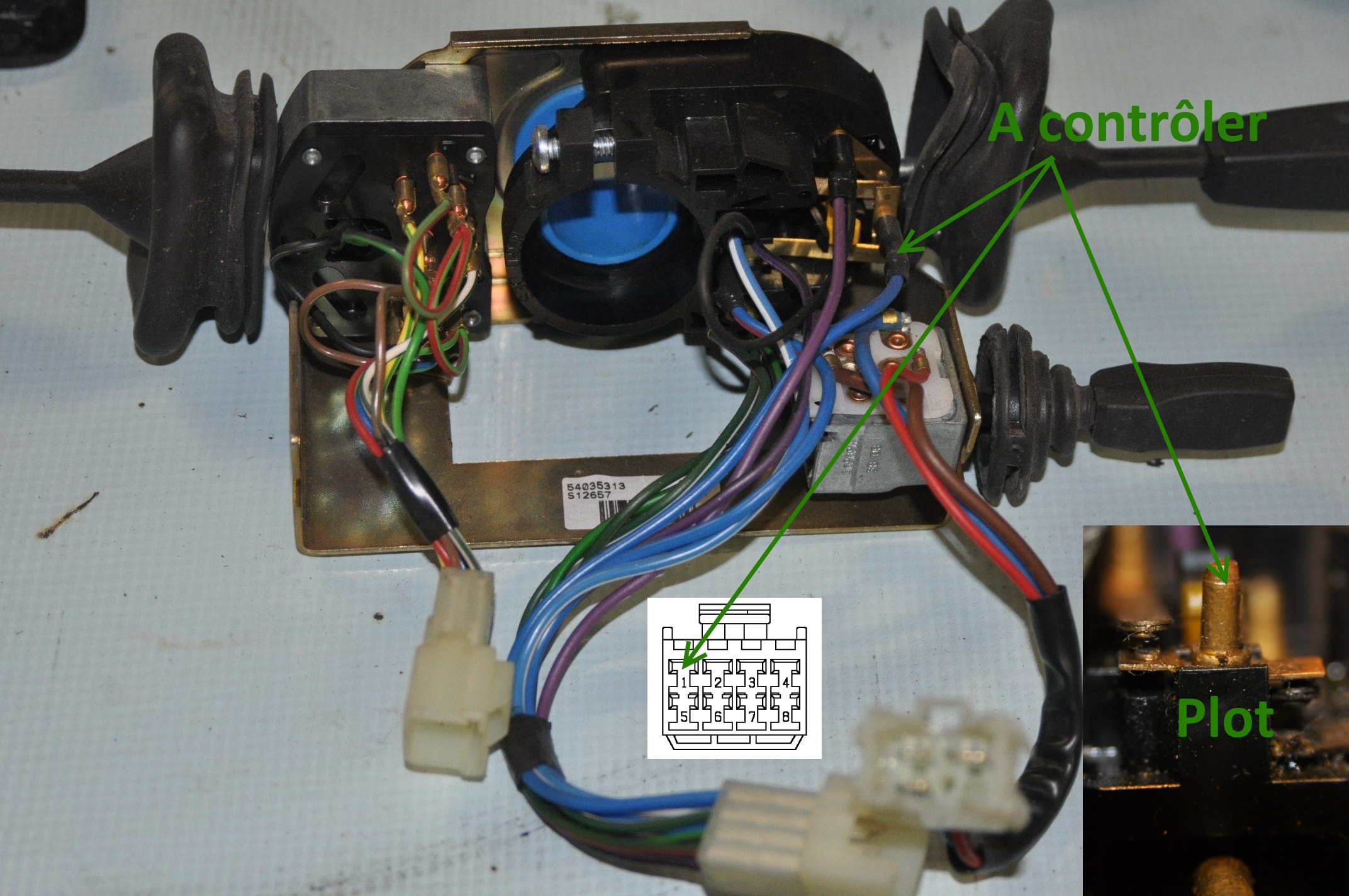 Connecteur et liaisons de contrôles du petit commodo de colonne: