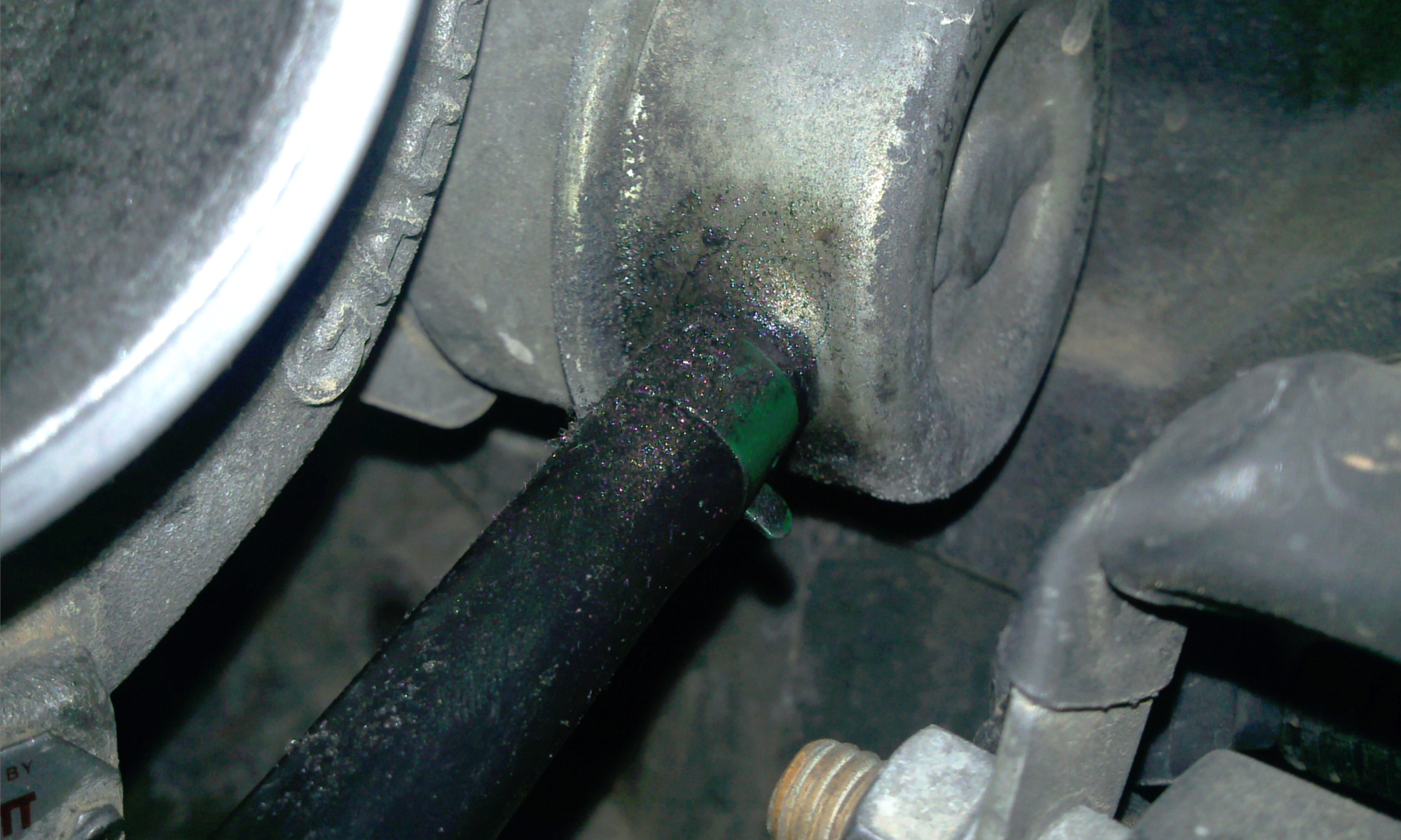 C'est en voulant installer un té de repiquage de la pression du turbo sur la durite de la wastegate que je découvris l"état de la durite en question :