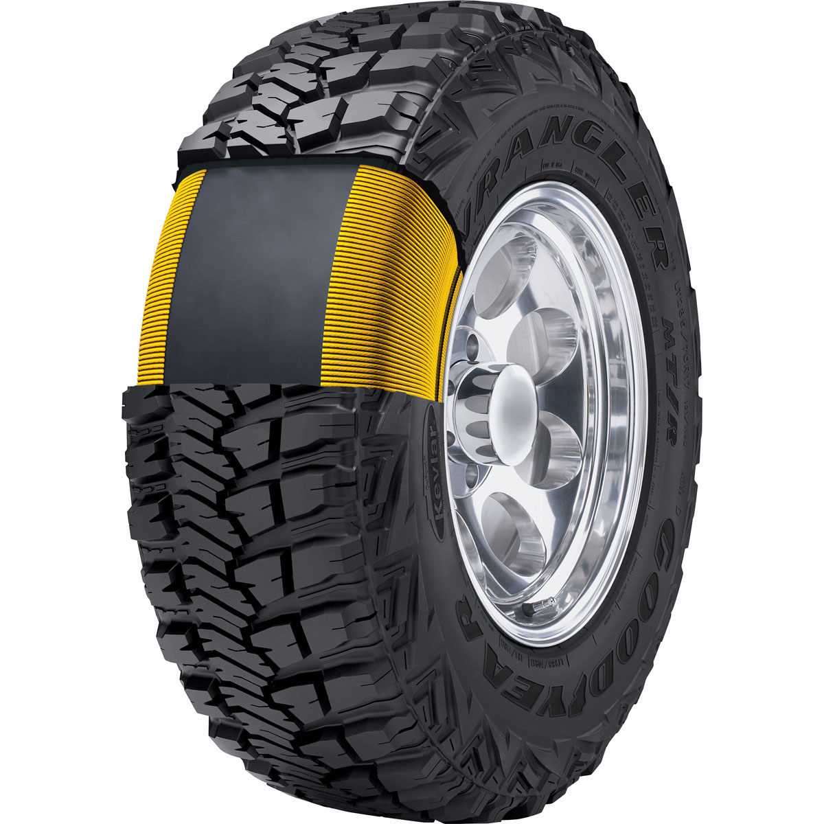 Un autre exemple, extrait de la brochure Goodyear pour l'armée : "Les flancs renforcés en câblé Kevlar® procurent une résistance accrue, jusqu'à 35% supérieure, vis-à-vis du perçage des flancs en tout terrain." C'est testé comment ? c'est 35% de plus par rapport à quoi ? La source** est introuvable, cela renvoit à : Goodyear Sidewall Penetration Energy — LT285/70R17 LR-D — 65 psi.