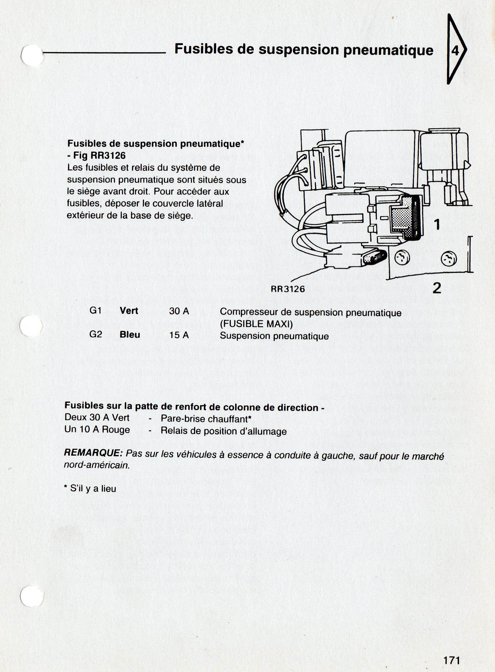 Pour répondre à tes interrogations, c'est un Range Balmoral: la série limitée qui a permis à LR d'écouler ses reste de VM avec la nouvelle caisse. Je n'ai pas cherché à quoi servait les autres fusibles. Il n'y a pas de couvercle sur les fusibles et je n'ai jamais eu le classeur d'origine.
