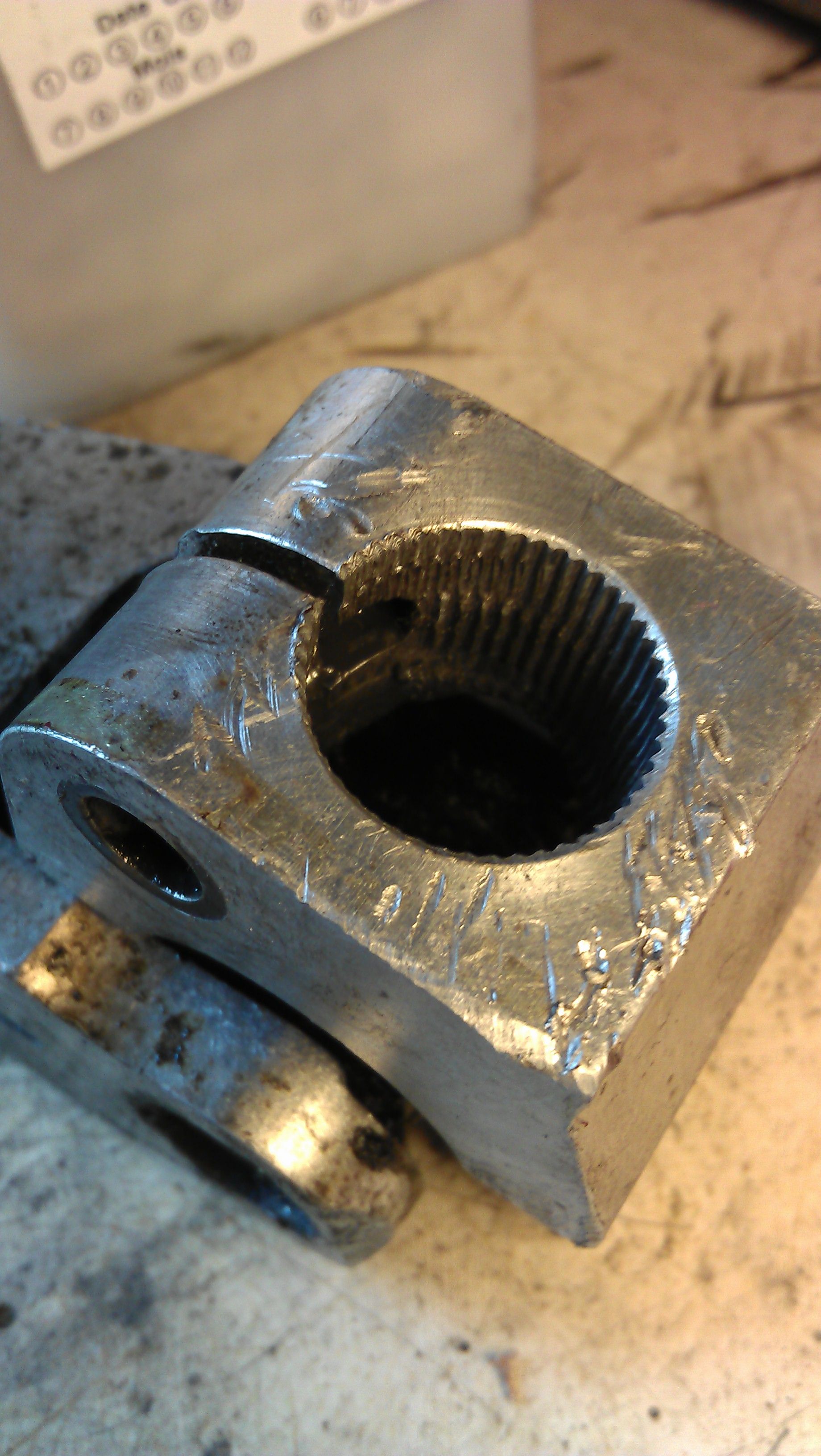 En comparant les cannelures.... ben il y avait une relative urgence à faire ce changement... On voit nettement l'usure de la pièce et les zones de ripages