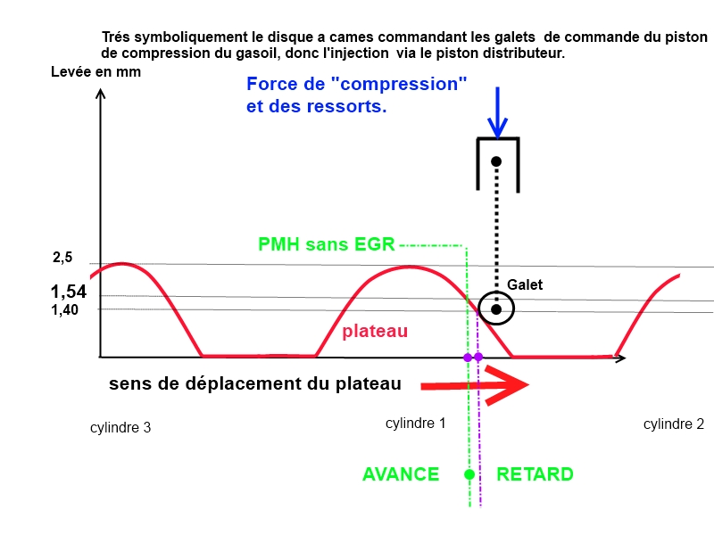 Lorsque l'on a pas l'EGR d'origine la levée est réglée à 1,54mm