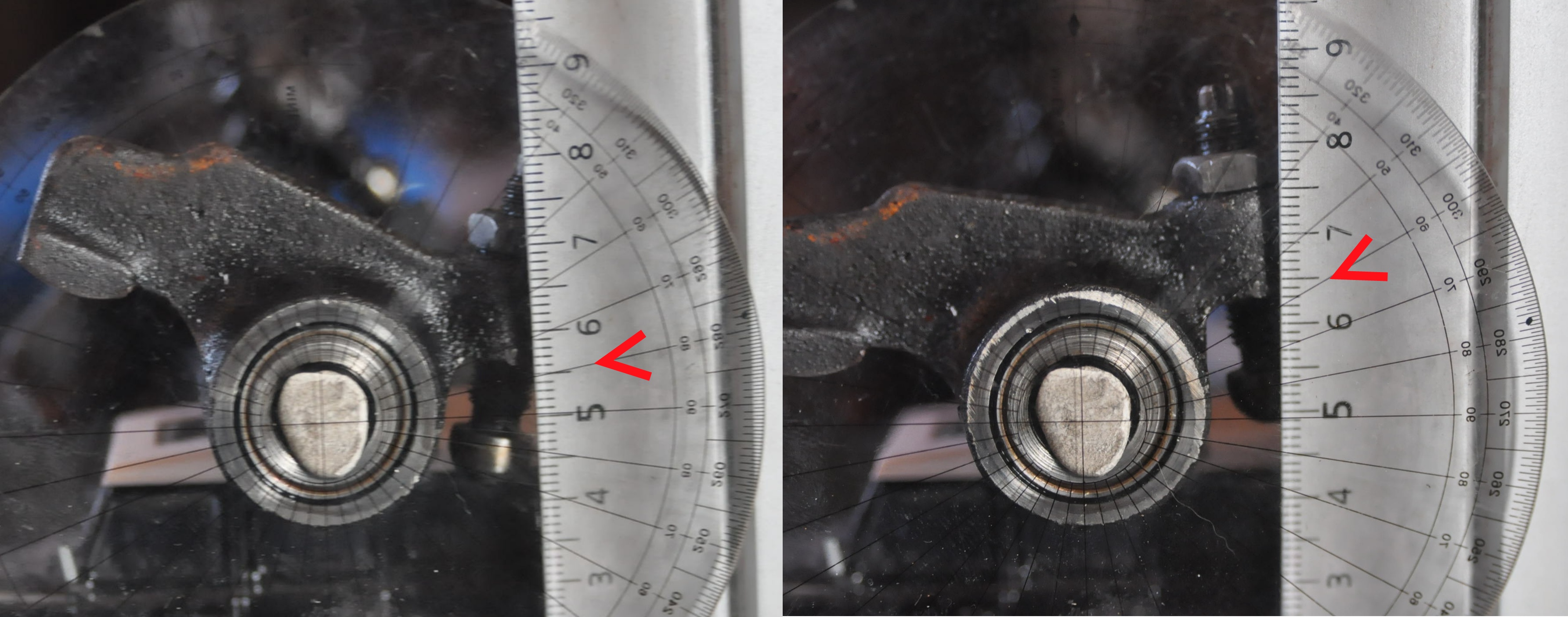 Lorsque j'ai fait mes mesures de bascule, outre le soin apporté à ne pas déplacer le culbu vers le bas, j'ai essayé de forcer comme un âne afin de bien repositionner le culbuteur sur la partie inférieure de la rampe (donc en conservant sa position originelle comme tu le fais) et ça n'a rien changé à l'affaire : toujours un à deux dixièmes de plus.